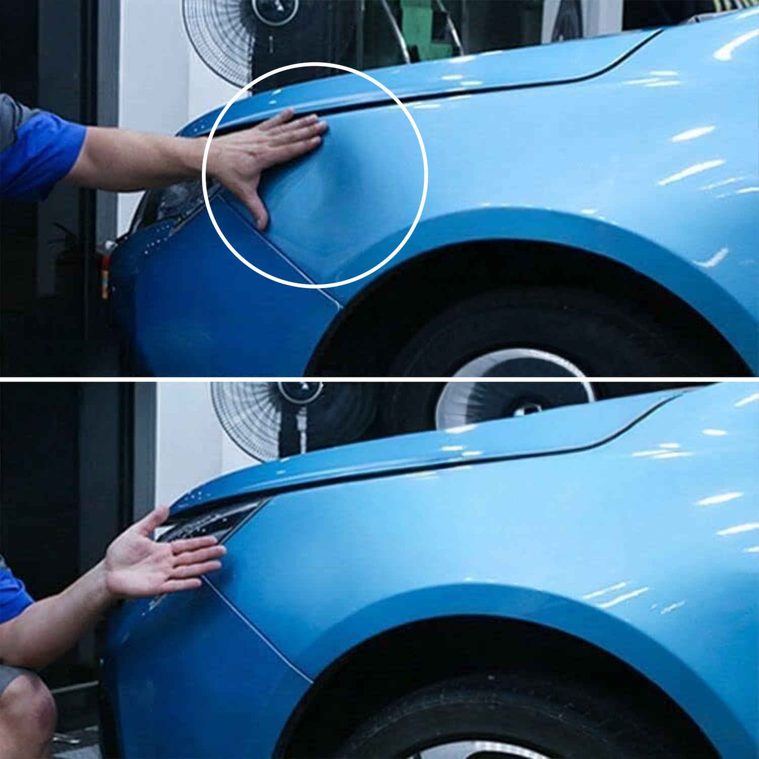 نعم، تناسب معظم السيارات (معدن عادي) والصدمات الخفيفة إلى المتوسطة بدون تمزق في الدهان، للصدمات الكبيرة أو المجعدة قد تحتاج متخصص.